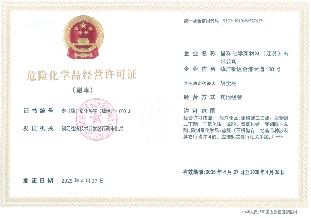 Copyright(C)2020, Changhe Chemical New Material (Jiangsu) Co., Ltd. All Rights Reserved. Supported by ChinaChemNet ChemNet Toocle Copyright Notice 备案序号:苏ICP备11033970号